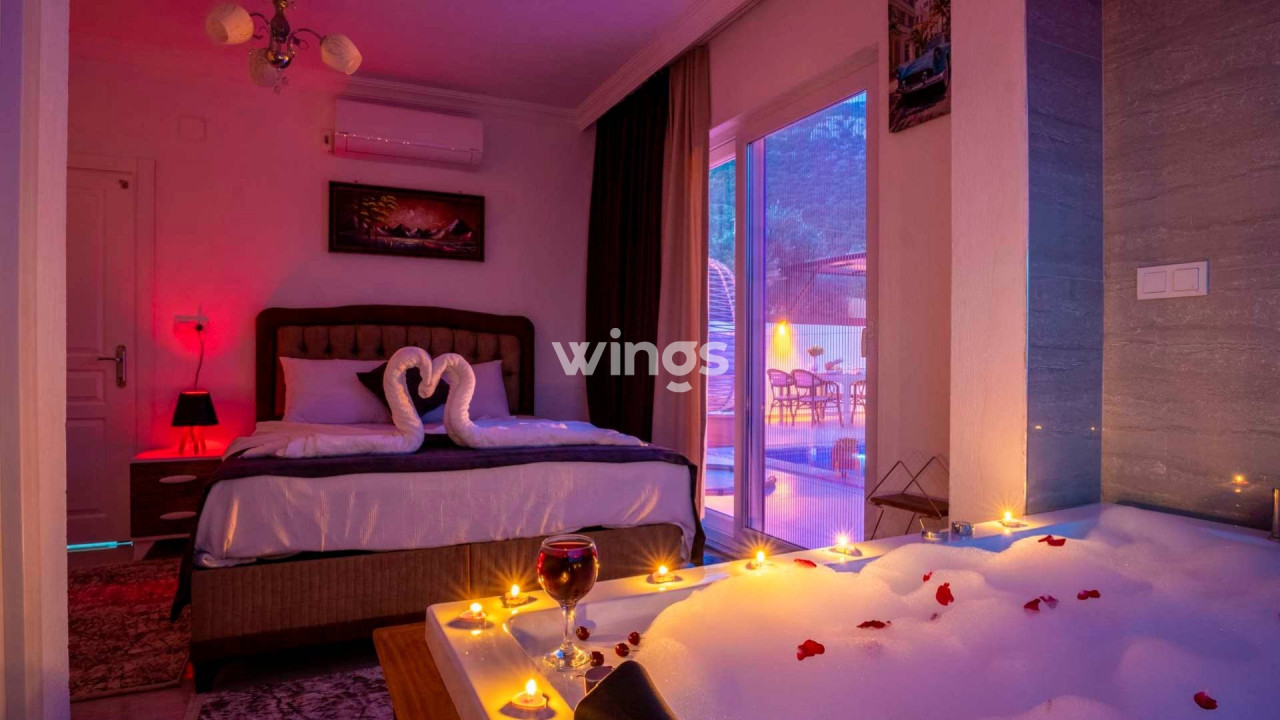 KALKAN, Çayköy'da bulunan bu konforlu ve şık suit daire, 4 kişi kapasitesi, 2 yatak odası ve 2 banyosu ile huzurlu anılar biriktirip stresli şehir yaşamından bir nebze uzaklaşmayı arzulayanlar için kusursuz bir seçimdir.