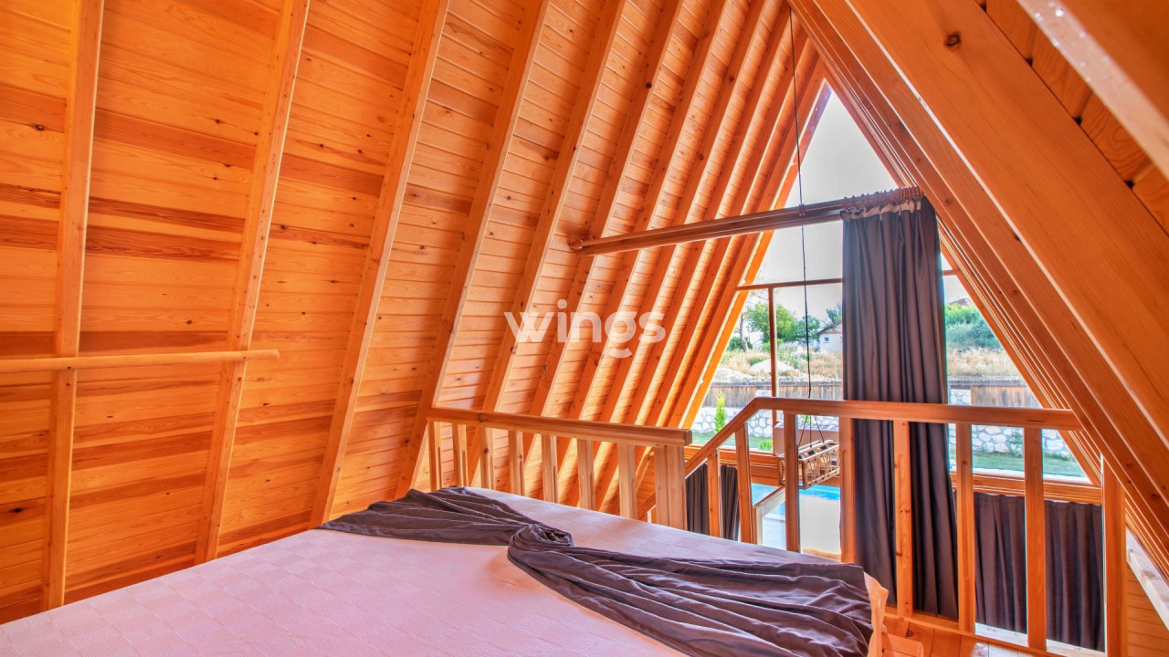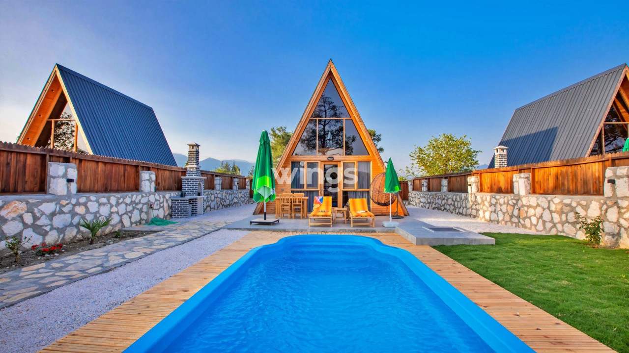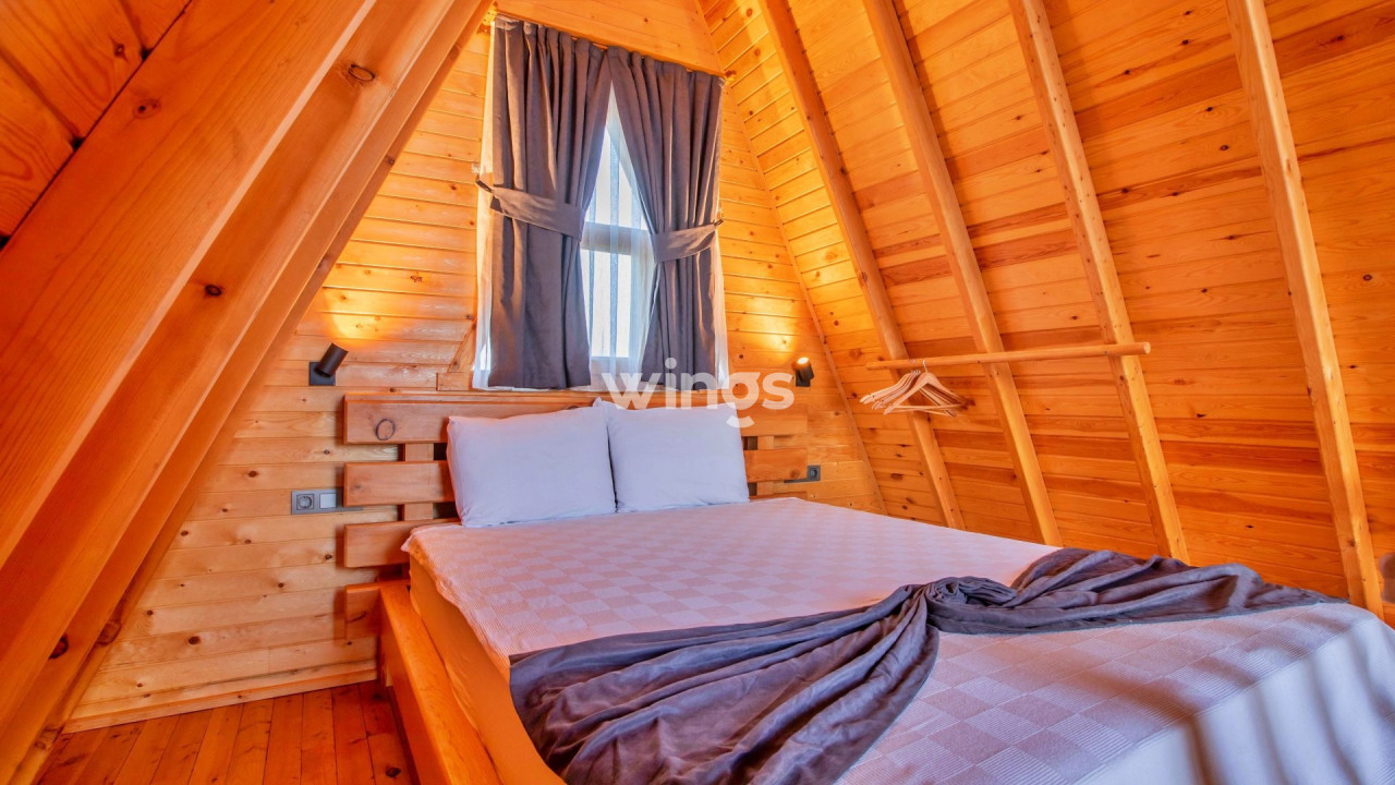 Bu bungalov, toplamda 2 kişilik konaklama kapasitesine sahip olup 1 yatak odası, 1 banyosuyla, misafirlerimizin tüm ihtiyaçlarını karşılayacak ev konforunda bir tatil deneyimi sunmaktadır.